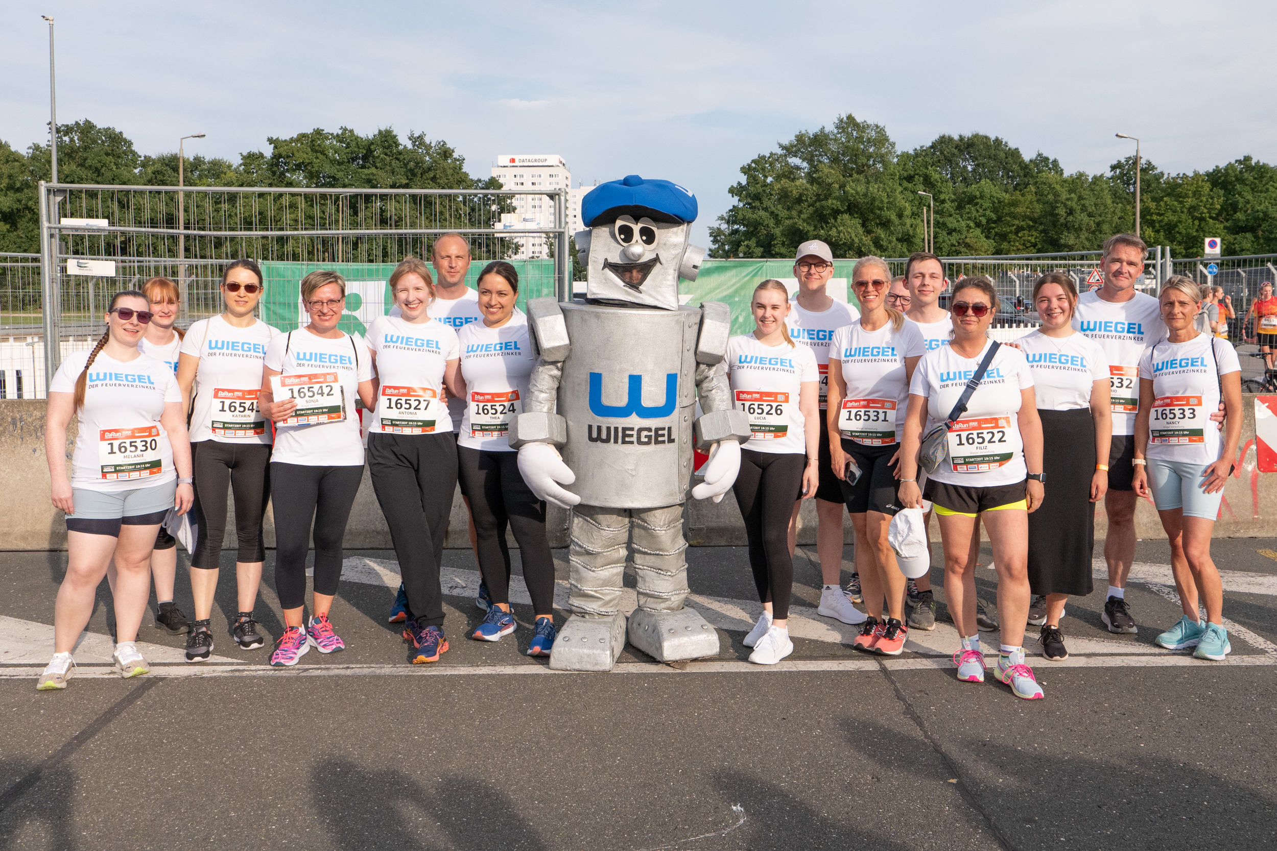 22 colleagues from our WIEGEL administration in Nuremberg, supported by our hard-working helpers and our mascot “Rostenix”, joined around 17,000 runners at the start. Our team of runners completed the 6.1-kilometre course around the Dutzendteich with excellence, finally crossing the finish line against the impressive backdrop of the Max Morlock Stadium bathed in summer evening light and enjoying the special flair of the moment.
